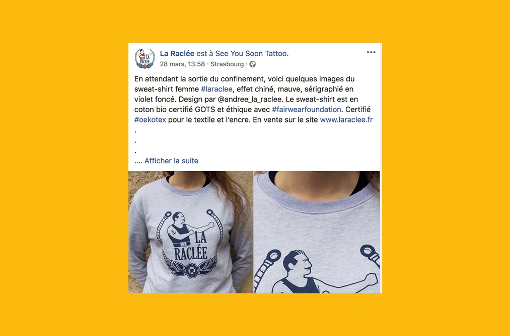 Faites comme Audrey, qui a créé la marque La Raclée : elle continue à partager ses produits de qualité certifiés bio sur Facebook et sur Instagram.