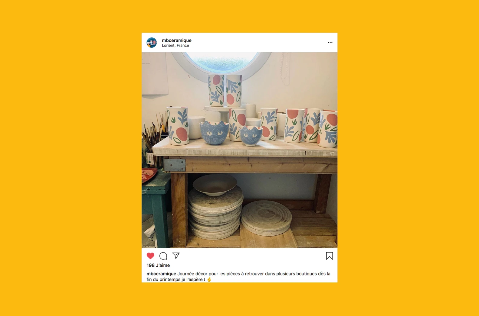 Mathilde, céramiste soutenue par l’Adie, profite de ces jours pour préparer sa nouvelle gamme de produits et partage ses créations sur Instagram.