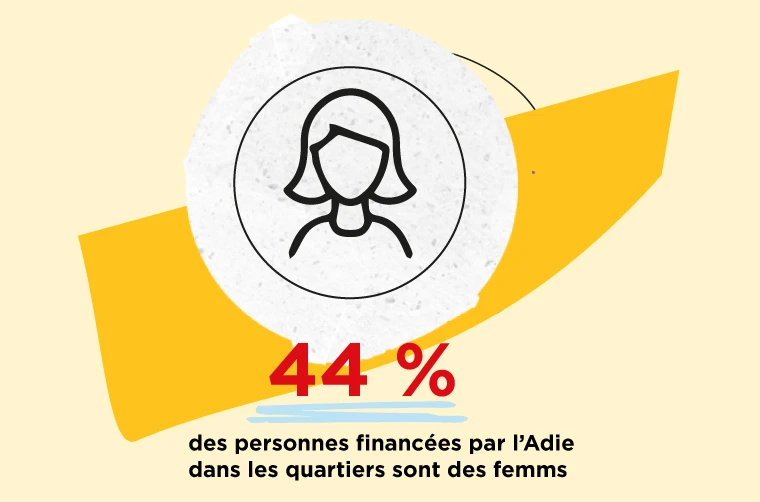 L’envie d’entreprendre dans les quartiers politiques de la ville est plus forte qu’ailleurs et la proportion de femmes qui osent se lancer avec l’Adie y est plus élevée, sans comparaison avec la moyenne nationale qui se situe sous la barre des 30 %.