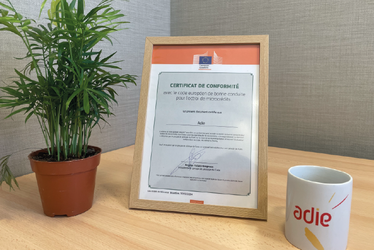 Le 30 janvier dernier, l’Adie a reçu une nouvelle fois son certificat de conformité du Code européen de bonne conduite pour l’octroi de microcrédits. Pour la troisième fois, l’Adie a été auditée afin d’obtenir ce certificat.
