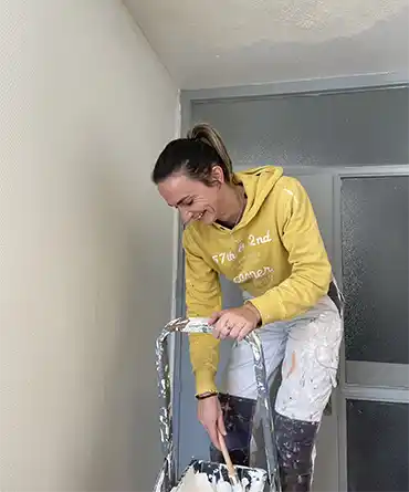 Bérangère, peintre en bâtiment depuis quatre ans, suis un chemin singulier avant de se consacrer pleinement à son entreprise. Initialement travailleuse sociale spécialisée dans l'accompagnement lié au logement, elle franchit plusieurs étapes marquantes avant de trouver sa voie dans le monde de la peinture.