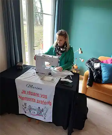 C’est à Tartas que Marina lance son entreprise “l’armoire à couture de Marina”. Spécialisée dans la réparation de vêtements et d'accessoires ainsi que dans la rénovation de peluches, elle crée et confectionne principalement des accessoires en pratiquant l'upcycling. Elle récupère des vêtements usagés, comme des jeans et des bleus de travail, ainsi que des peluches, des draps et des rideaux, qu'elle transforme en pièces uniques.