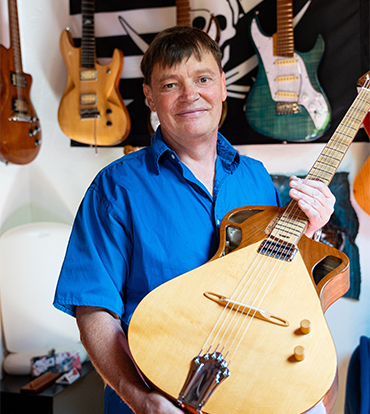Sa passion pour la guitare ne date pas d’hier : il fabrique sa toute première guitare il y a près de 30 ans, poussé par la curiosité et l’envie de comprendre chaque détail de l’instrument. Depuis, cette fascination n’a jamais cessé de grandir. Loin d’une lubie passagère, la lutherie est pour lui un art de vivre, où il peut tout imaginer, tout concevoir, tout construire.