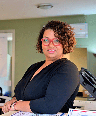 Marina, gérante d'une entreprise de reprographie et standard téléphonique personnalisé, à Saint-Leu