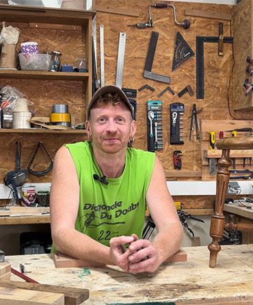 Romain, entrepreneur financé par l'Adie du Doubs, a ouvert son atelier d'ébénisterie à Besançon