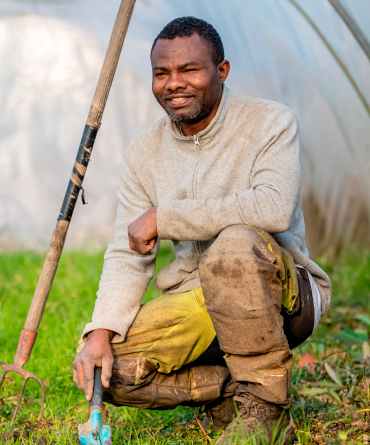 Produire des légumes bio africains et locaux en Isère, ce n’est pas commun ! C’est pourtant bien ce que fait Serge avec succès. Arrivé en 2008, Serge ne découvre pas le travail de la terre en France. Au Congo, il aime déjà s’occuper du potager familial et obtient un bac en mécanique agricole au cours duquel il apprend l’utilisation des outils mécaniques dans l’agriculture, des compétences qu’il mobilise et développe pour son insertion professionnelle en France.