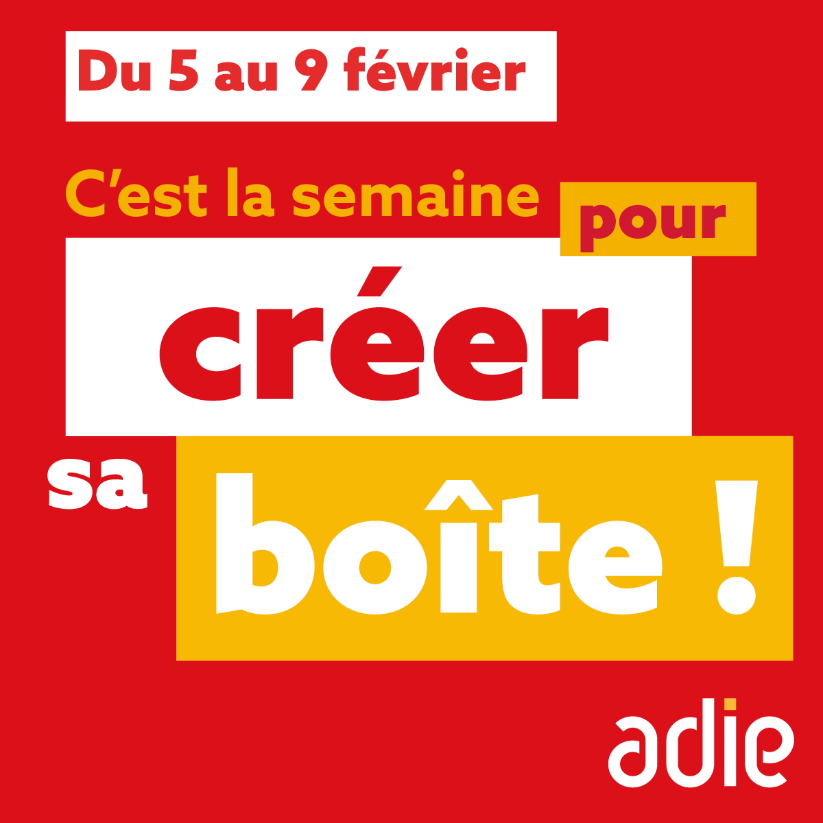Du 5 au 9 février, l'Adie organise la semaine pour créer sa boîte !