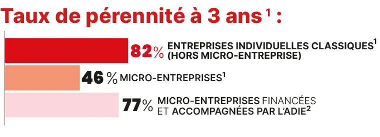 Souvent plus éloignées des circuits d’accompagnement à la création d’entreprise, ces micro-entreprises demeurent cependant moins pérennes que la moyenne des entreprises nationales.