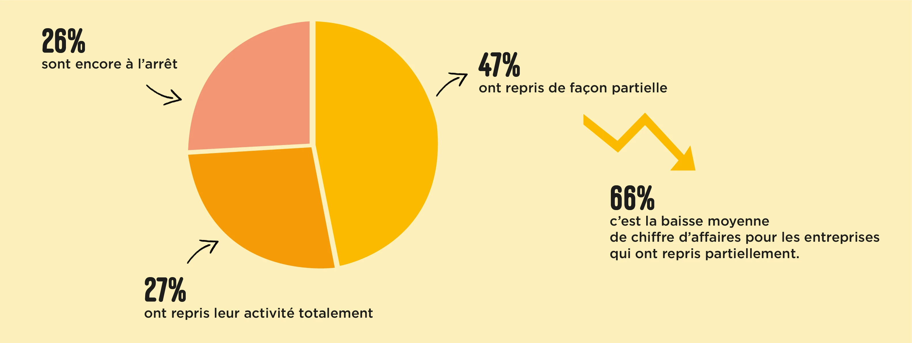 Du jour au lendemain, la quasi-totalité (94%) de ces entrepreneurs ont dû cesser totalement ou partiellement leur activité.