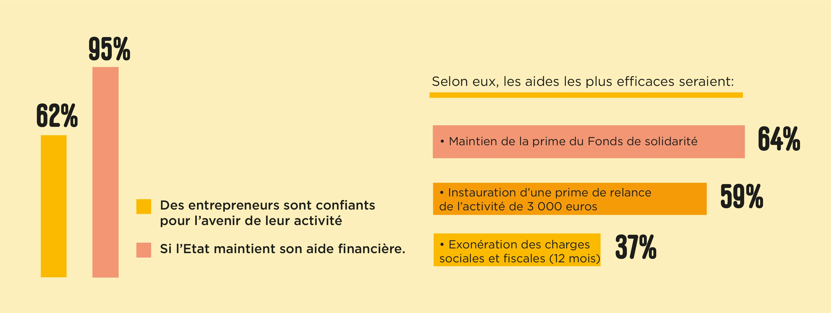 La mobilisation sans précédent des Pouvoirs Publics a permis de sauver de nombreuses d’entreprises : 63% des entrepreneurs ayant bénéficié du fonds de solidarité estiment en effet que sans cette aide ils n’auraient pu sauver leur activité jusqu’à maintenant. Il ne faut pas que cet effort collectif ait été vain.