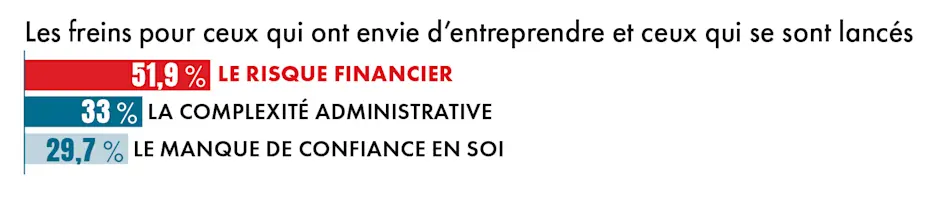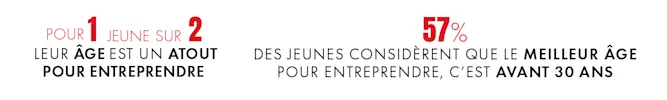 Malgré l’élan qui pousse 7 jeunes sur 10 à vouloir entreprendre, ils représentent toujours une minorité des entrepreneurs en France (17,2 %*). Avant le manque de confiance en soi et la complexité administrative, le frein le plus important à l’entrepreneuriat des jeunes est d’ordre financier, d’autant qu’ils ont tendance à surestimer la somme nécessaire pour se lancer : seul 1 sur 4 pense qu’on peut se lancer avec moins de 10 000 euros.
