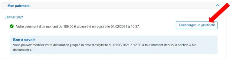 Je dois impérativement télécharger le justificatif de déclaration. Il me permettra de :