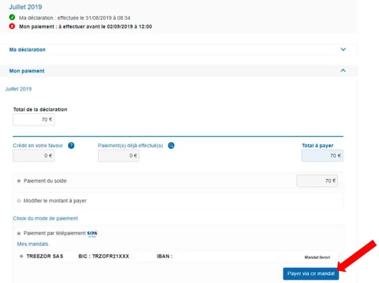Je clique sur « Payer via ce mandat » pour valider mon paiement.